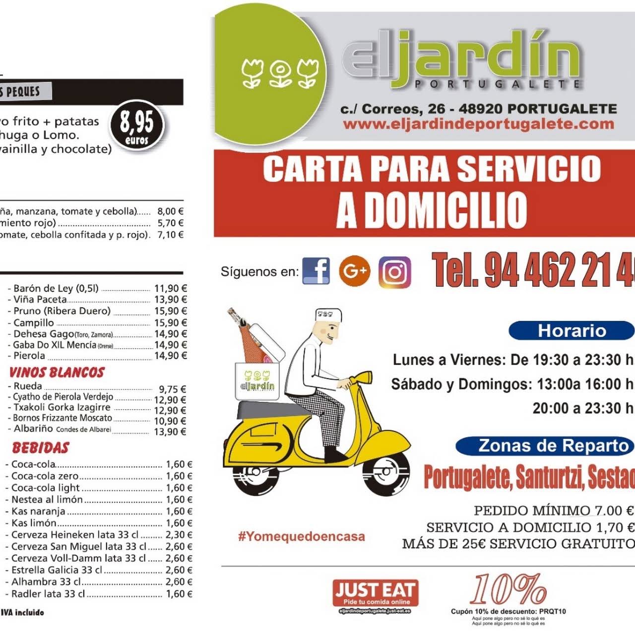 Nº 1 de 210 restaurantes en Portugalete. Echa un vistazo al menú completo de El Jardín de Portugalete en Portugalete en el 48920 y haz tu pedido. El Jardín de Portugalete nº 1 entre la comida rápida de Portugalete.