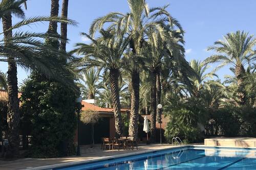 Situado a 14 minutos a pie de la Basílica menor de Santa María de Elche el Jardín Milenio Hotel encantador cuenta con una piscina una piscina exterior y un jardín. Anuncio Echa un ojo a Hotel Jardín Milenio y otros parecidos. A 15 minutos del aeropuerto de Alicante y de fácil acceso desde la A-7 y autovía de Madrid el Hotel Jardín Milenio está situado a tan solo 5 minutos del centro comercial y a la vez inmerso en plena naturaleza en el palmeral de Elche declarado por la UNESCO Patrimonio de la Humanidad.